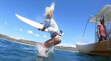 Já si myslím, že stačí mít dobrý přístup. Vždycky jsem zdravila všechny ve vodě a usmívala jsem se. Pokaždé, když jsem udělala nějakou blbost, tak jsem se omluvila. Když místním ukážeš respekt, váží si toho. Není jednoduchý být blonďatá holka na line-apu a snažit se chytit právě ty dobrý vlny, protože ikdyž máš priority, tak ti je zkušený surfař veme. Pořád se dívají na holky, že neumíme surfovat nebo se bojíme. Potřebuješ spoustu trpělivosti a když máš šanci, nezkazit ji.