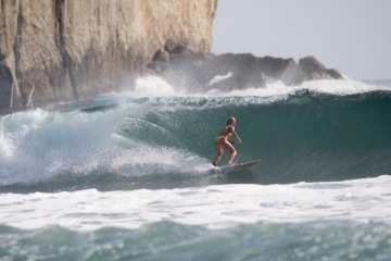 Haha…můj surfing je prostě v procesu. Jsem na sebe kritická a pracuji na zlepšení své techniky. Surfuji co nejvíc můžu, hlavně na shortboardu. Když jsou vlny prťavý tak longboard, ale to mě brzo nebaví, jelikož je to jednoduchý a není to pro mě výzva.