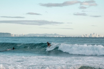 První věc, kterou jsme viděli, bylo krásný parkoviště na kopečku nad spotem, ZADARMO (to se v Austrálii moc nevidí), u kterýho byly free grily, a celkově to působilo strašně krásně. Posléze se nám otevřel výhled na krásný glassy waves s průhledem na mrakodrapy Goldcoastu. Ve vodě bylo sice hodně lidí, ale vln tam bylo pro všechny dost.