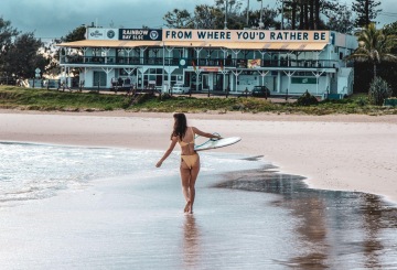 Auto jsme fásli hned ráno a hned se vydali do meky australskýho surfování – BYRON BAY. Pro fanoušky Marvelů je to místo, kde bydlí Thor (Chris Hemswroth). Pro ostatní je to nádherný hipsto-surfo-cute městečko, který je asi 2 hodiny daleko od Brisbane. Byron Bay je dost turistickej, takže se tam dá najít spoustu míst, kde si dát dobrý kafe nebo burgra. Přímo na surfování jsou ve městě dvě pláže.