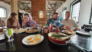 Řekli jsme si, že to tu zkusíme dát úplně naplno. To, že prostor není náš a to, že jsme ho měli domluvený na dva týdny (což jsme pak ještě o týden prodloužili) nás samozřejmě trochu limitovalo. Navíc to byla dost hurá akce, kdy od rozhodnutí k otevření uplynulo jenom pět dnů. Plus korona. No prostě to bylo trochu na punk. I přes to se nám tu ale podle mě podařilo udělat docela dobrý místo a nabídnout lidem super program. Každý den jsme začínali ranní jógou, po který jsme si dali společnou snídani. Přes den jsme tu pak pracovali na počítačích, což se nám střídavě dařilo více či méně. Večer jsme tu pak každý den měli nějakou jinou aktivitu; Kubovy tréninky, Surfskate tréninky, Smíčovu meditaci, ROXY surf yoga & fitness, LAN párty, normální lehčí párty, serfovej blešák, turnaj ve fotbálku, všechno možný.
