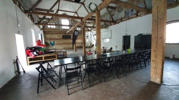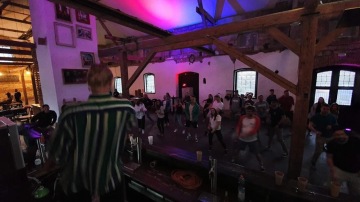 Máme super vztahy s lidma z Radlický a díky tomu jsme od nich dostali skvělou příležitost využít jejich prostor, za kterou bych ještě tímhle způsobem chtěl znova moc poděkovat. Radlická kulturní sportovna je naprosto úžasná a pro naše účely téměř ideální. Všichni ji navíc už známe, a to nejen z naší listopadový narozeninový párty, která se tu moc vyvedla. Bohužel takových prostorů v širším centru Prahy už není moc a budou ještě ubývat. Musíme si to užít, dokud to jde.