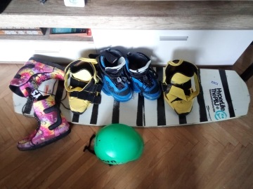 1x wake 143cm, 2x vázání, 1x helma, tzn. Prkno 3500kc, vazani 43,5Euro velikost 2x2000kc, helma L 50…