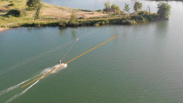 Cílem naší první jízdy bude se zvednout a kontrolovaně dojet na konec vleku k bojím. Snaž si vzpomenout na předchozí video, na vstávání nespěchat a nejdřív nechat prkno kolmo do směru jízdy a tlačit vodu. Potom stočíš prkno a srovnáš své postavení. Čemu se snaž vyhnout je přitahování rukou k hrudníku, protože to tě akorát rozhodí. Snaž se je mít celou dobu natažené/mírně pokrčené. Taky se snaž jet rovně přímo pod ocelovým lanem, ať si pořádně nacvičíš základní postavení. Pokud budeš vyjíždět na nějakou stranu, tak pravděpodobně nemáš váhu nad středem prkna, nechtěně tlačíš na paty nebo špičky a tím lehce zatáčíš.