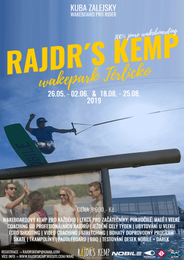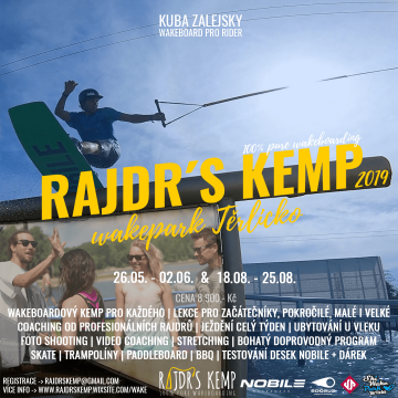 Kuba Zálejský vás zve na další rundu Rajdr's Kempu, tedy kempu organizovaném samotnými ridery pro další ridery, kteří se chtějí ve svém ježdění posunout dál a také pro úplné nováčky, kteří na wakeboardové desce ještě nestáli! Tímto Zálejovi předáváme slovo.