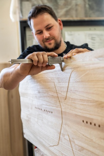 Po lisu se prkno nechává jeden den odpočinout, dozrát a následně jde zpátky na ponk na hrubé opracování a finální tvarování. V poslední fázi se prkno brousí, kontroluje, zabalí a když je všechno perfektní, tak se pošle k tobě!