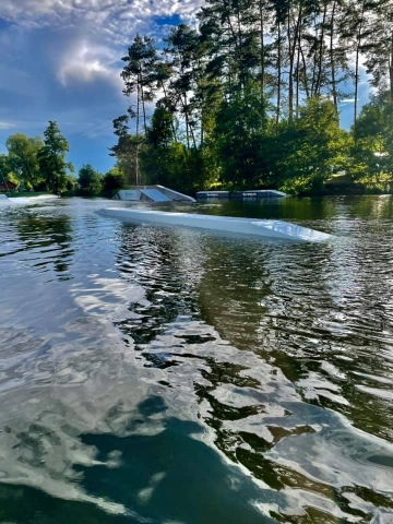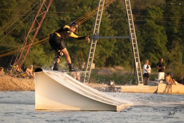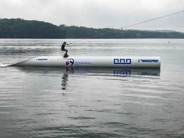 Jeden z prvních areálů, který se letos pochlubil s novou překážkou byl Wake park Hradec Králové. První kousek, co se objevil na vodě, byl parádní celoplastový transition rail. Ten má nahoře úzkou trubku a z něho jde skoro až do vody ohnutý plast, který slouží hlavně jako dopad. Tahle překážka naučí wakeaře dopadat do transitionu a navíc se dá hezky kombinovat i s dalšími překážkami, když už jich má park hodně, takže tenhle kousek se rozhodně neztratí!