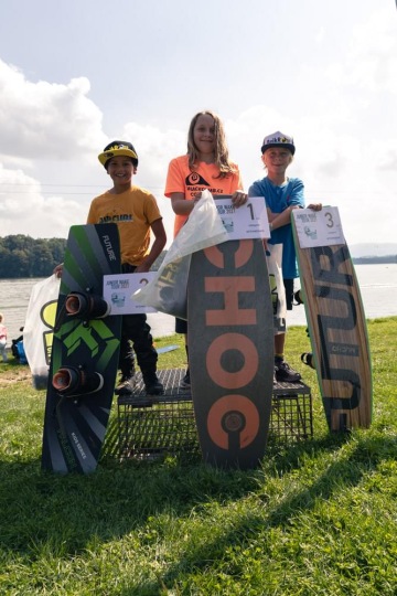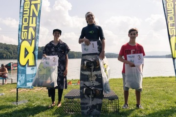 Samotný závod se pak vyvíjel podobně jako jsme ho znali z WakePortu. Závodilo se skoro na všech překážkách na první rovince vleku, takže si děti mohly vybrat co jim sedí! Nejlepší taktika stejně byla ukázat toho rozhodčím co nejvíc, a proto děti lítali na kickerech a jezdili bedny všech tvarů a velikostí. Oproti minulé zastávce navíc pro prcky v kategorii Young Blood přibyla i možnost dělat triky na vodě. Mohli jsme tak sledovat klouzané 360 nebo oblíbený touch water a nechyběly ani mávačky pro rodiče a rozhodčí!