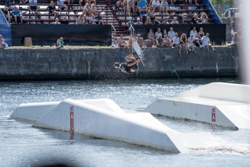 Samotný wake závod se jel na jednom ze dvou malých (2.0) vleků v Aarhus Watersports Complexu. Ten je slušně dlouhý a osazený jednou překážkou za druhou. Závodníci se tak rozhodně nenudili a dorazili i borci jako Liam Peacock, Viktor Salmon nebo Pedro Caldas, který nakonec bral první příčku. Akce tak byla hodně nabitá a místňáci mohli sledovat co všechno se dá na jejich domácím setupu vymyslet.