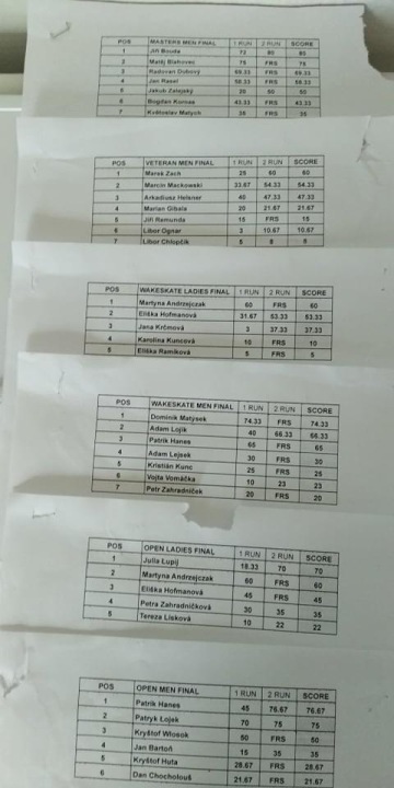 Medailové příčky si nakonec rozebrala známá jména z našich končin, ale v nějakých kategoriích s výsledky zamíchali i závodníci ze zahraničí. Koukneme se na ty nejnabitější kategorie a na zbytek se můžete podívat ve výsledovce níže. Pravděpodobně tu nejsilnější kategorii open man obsadil tradičně Patrik Hanes, ale na záda mu nepříjemně dýchal mlaďák Patryk Łojek, který dostal jenom o necelé dva body méně. Dámskou kategorii open ladies obsadila zaslouženě zahraniční Julia Łupij. Na wakeskateu ovládl mužskou kategorii Dominik Matýsek a za dámy kralovala Martyna Andrzejczak. Co určitě ještě stojí za zmínku jsou kategorie veteránů a masters, které byly pořádně nabité a mohli jsme v nich sledovat neskutečný boj o bednu!
