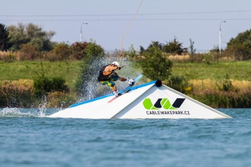 V parku je hned několik novinek, ale začneme hezky od začátku. Na vodě je v tuhle chvíli stejný set-up, který znáš z minulého léta. To znamená, že na vodě je dohromady 9 překážek v následujícím složení: malý slider, funbox, levý kicker, rooftop, asymetrický kicker, rail, vlnka, pussybox a up-rail. Rozmístění překážek je stejné s jediným rozdílem. Asymetr šel vedle rooftopu za druhý sloup. Důvod je takový, že se co nevidět můžeš těšit na dvě nové překážky. Nemůžeme ještě moc prozradit, ale bude to velký! O první můžeme říct, že je 15 metrů dlouhá a nenajdeš ji nikde v Česku. Všechny překážky jsou také zkontrolované a opravené, aby vše bylo bezpečné a jelo jak po másle.